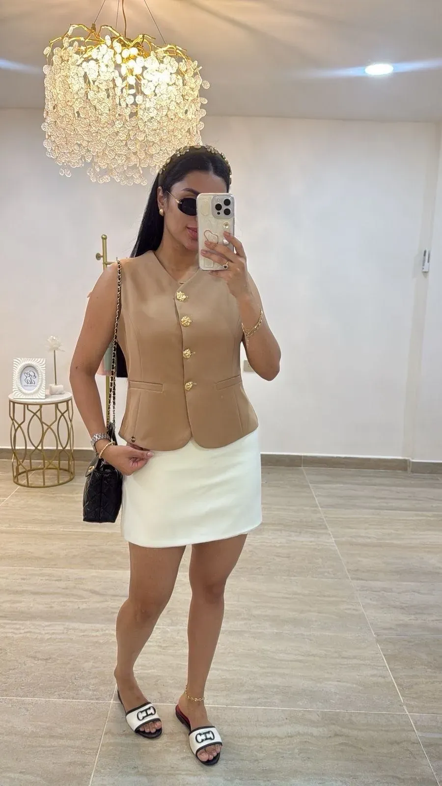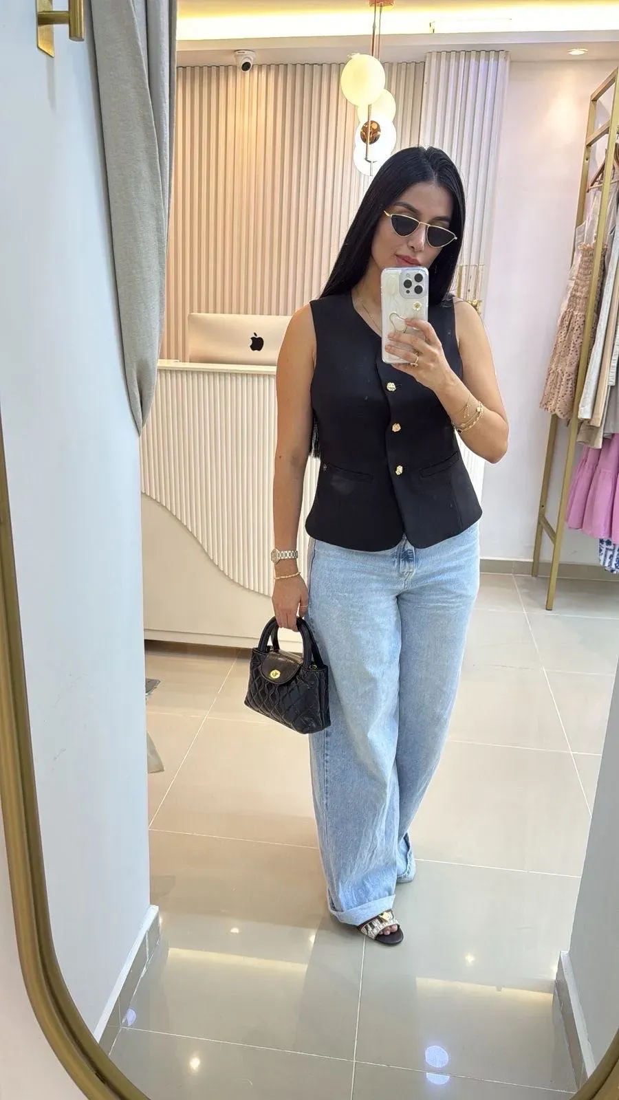BLAZER en noche de Viena tipo recta sin mangas. Una prenda elegante y versátil que te hará lucir sofisticada en cualquier ocasión. Añade un toque de estilo a tu guardarropa con este pieza única.