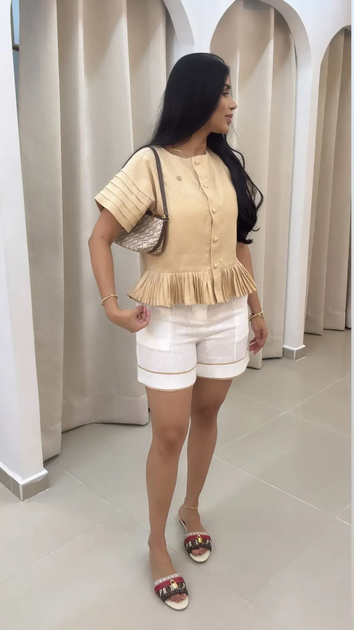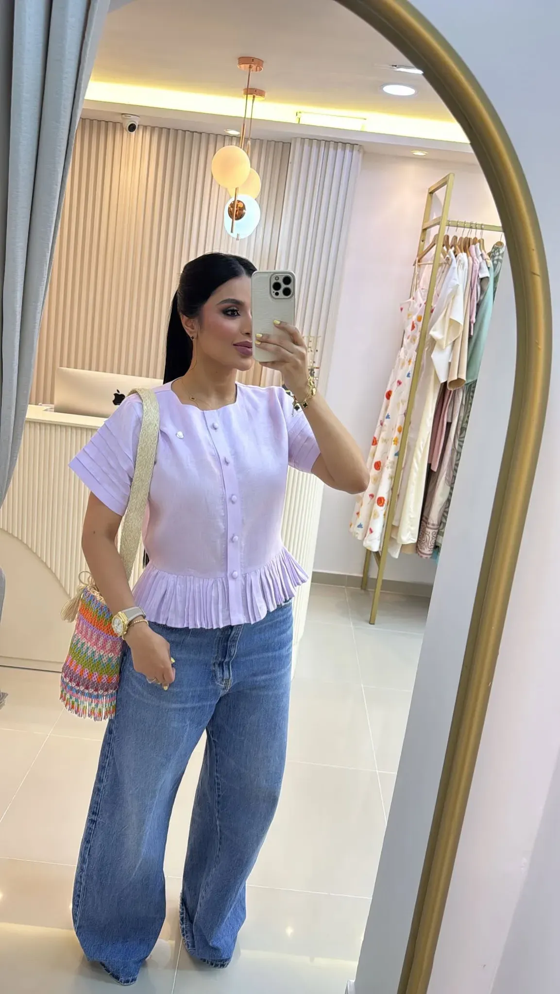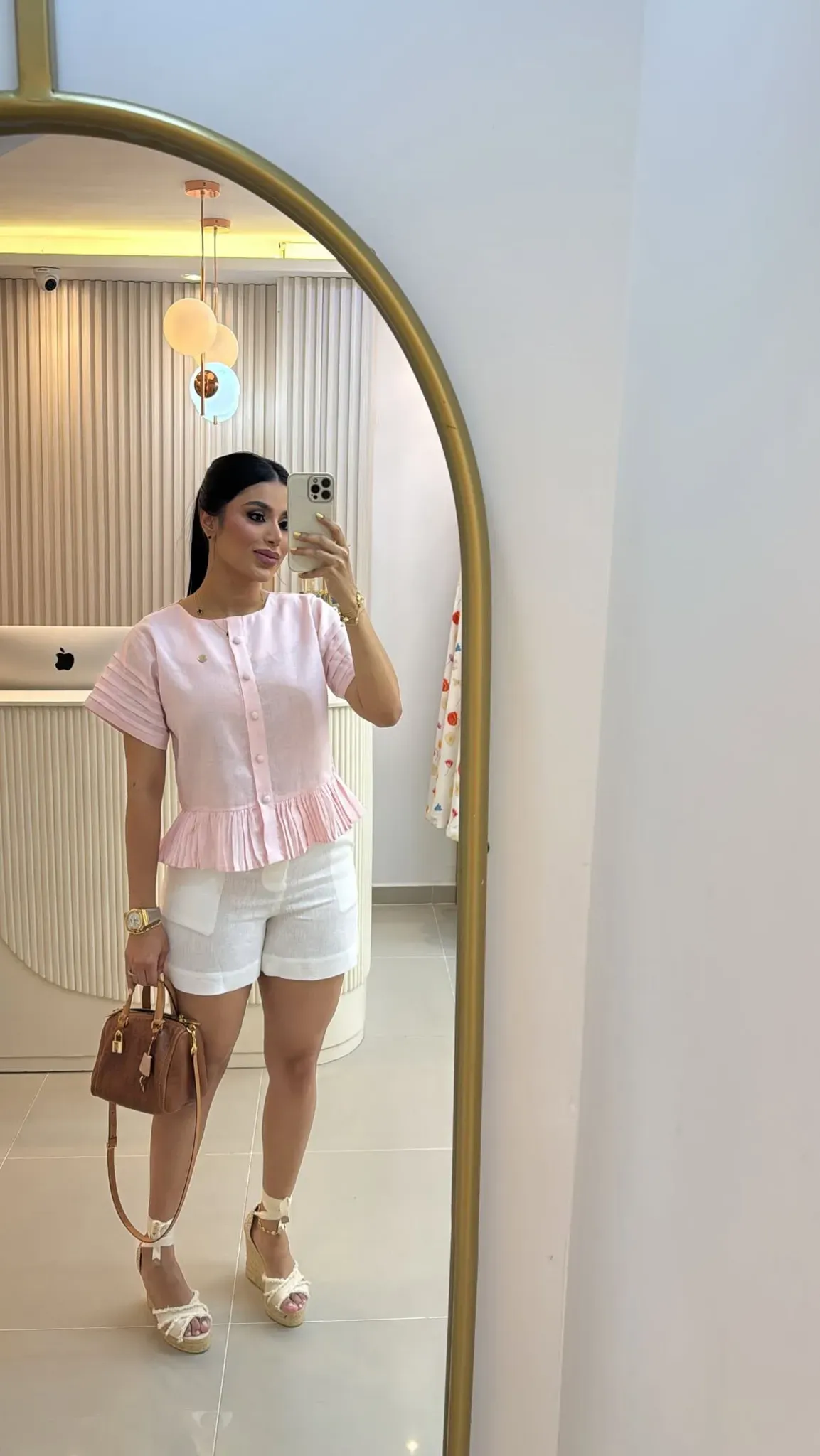 Blusa con diseño de alforzas en las mangas y botones hasta el final con arandela plisada. Una prenda elegante y moderna que resalta tu estilo único. Perfecta para cualquier ocasión, esta blusa es un must-have en tu armario.